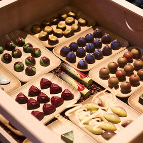 Hier finden Sie die Auswahl an Pralinen, die aktuell Ihrer Geschenkbox sein können. Je nach Art der Box sind vielleicht nicht alle der aufgelisteten Produkte enthalten.